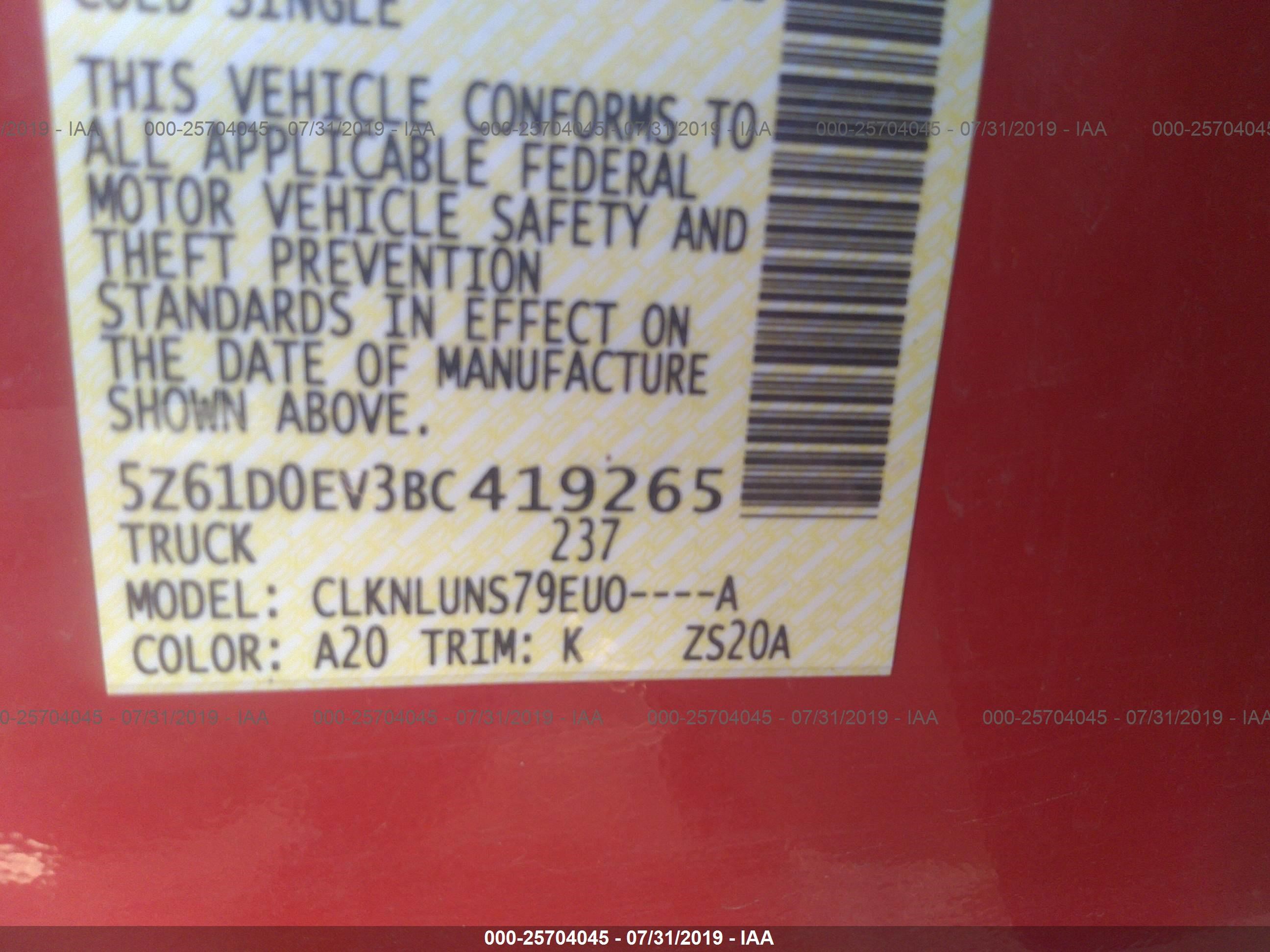 VIN: 5Z61D0EV3BC419265