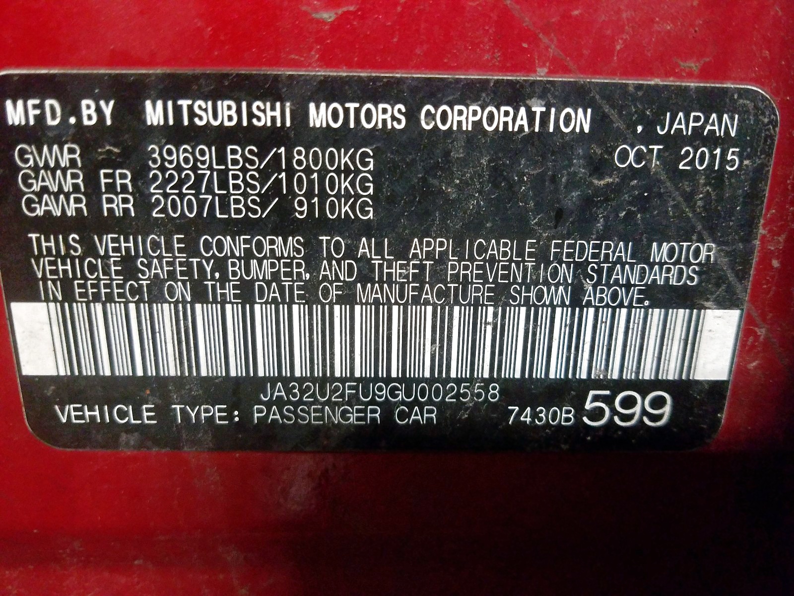VIN: JA32U2FU9GU002558
