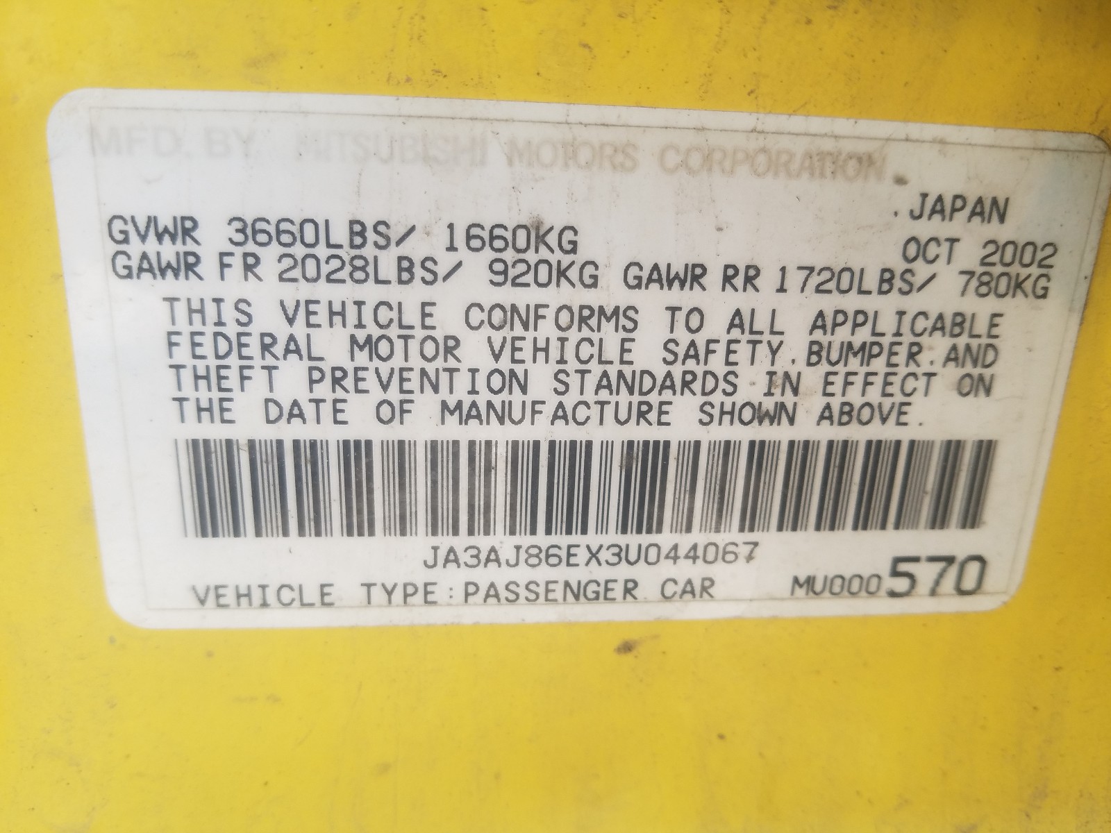 VIN: JA3AJ86EX3U044067