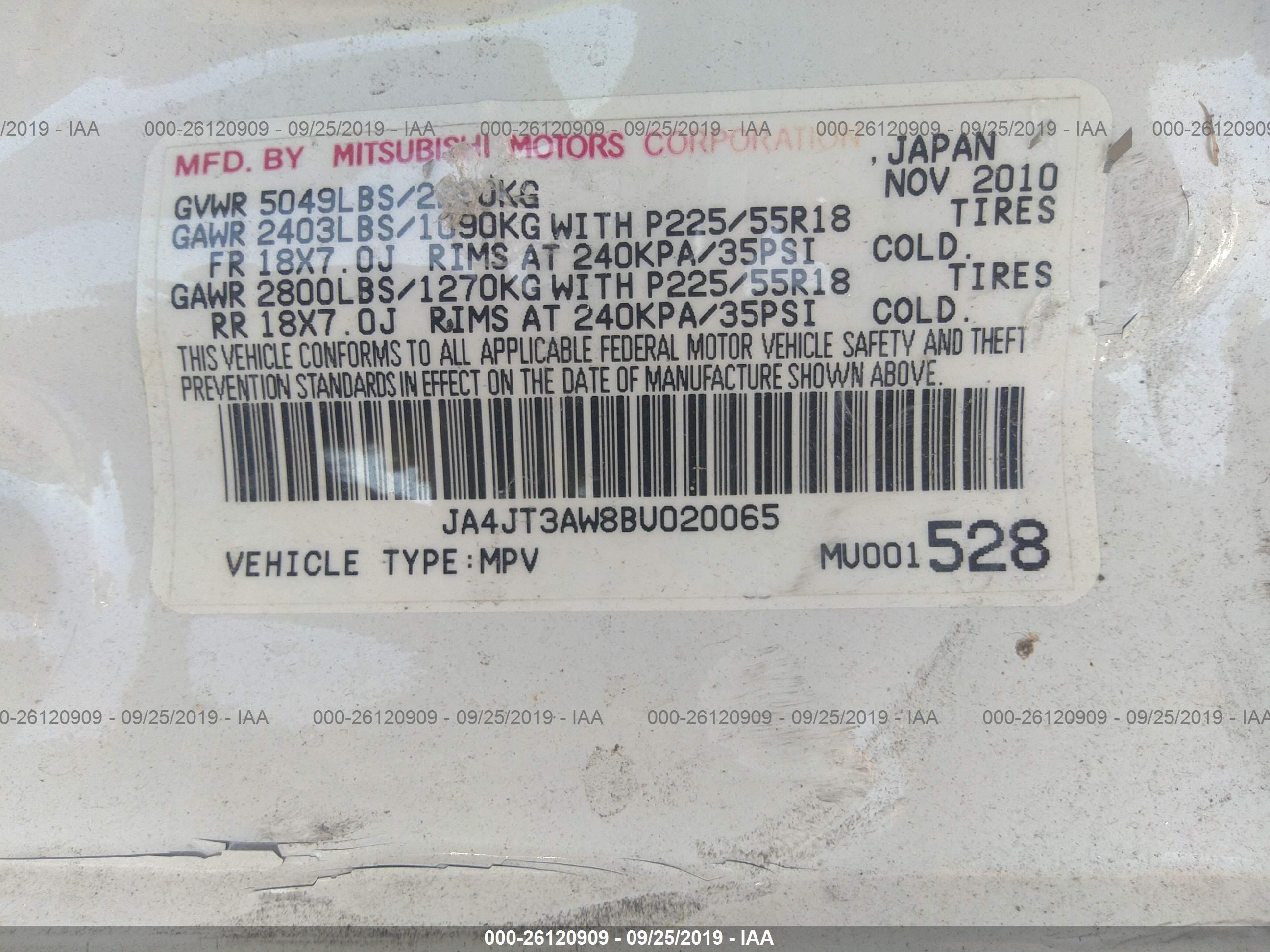 VIN: JA4JT3AW8BU020065