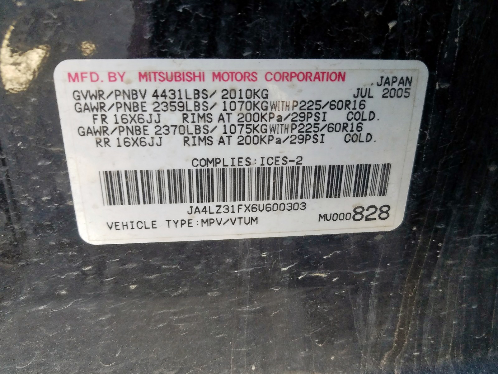 VIN: JA4LZ31FX6U600303