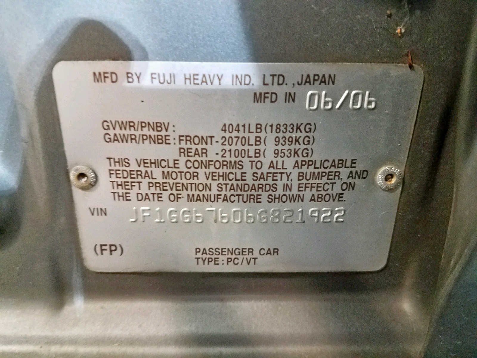 VIN: JF1GG67606G821922