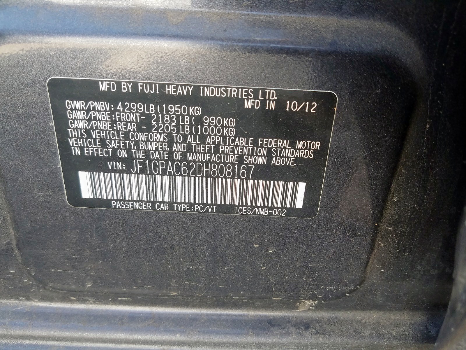 VIN: JF1GPAC62DH808167