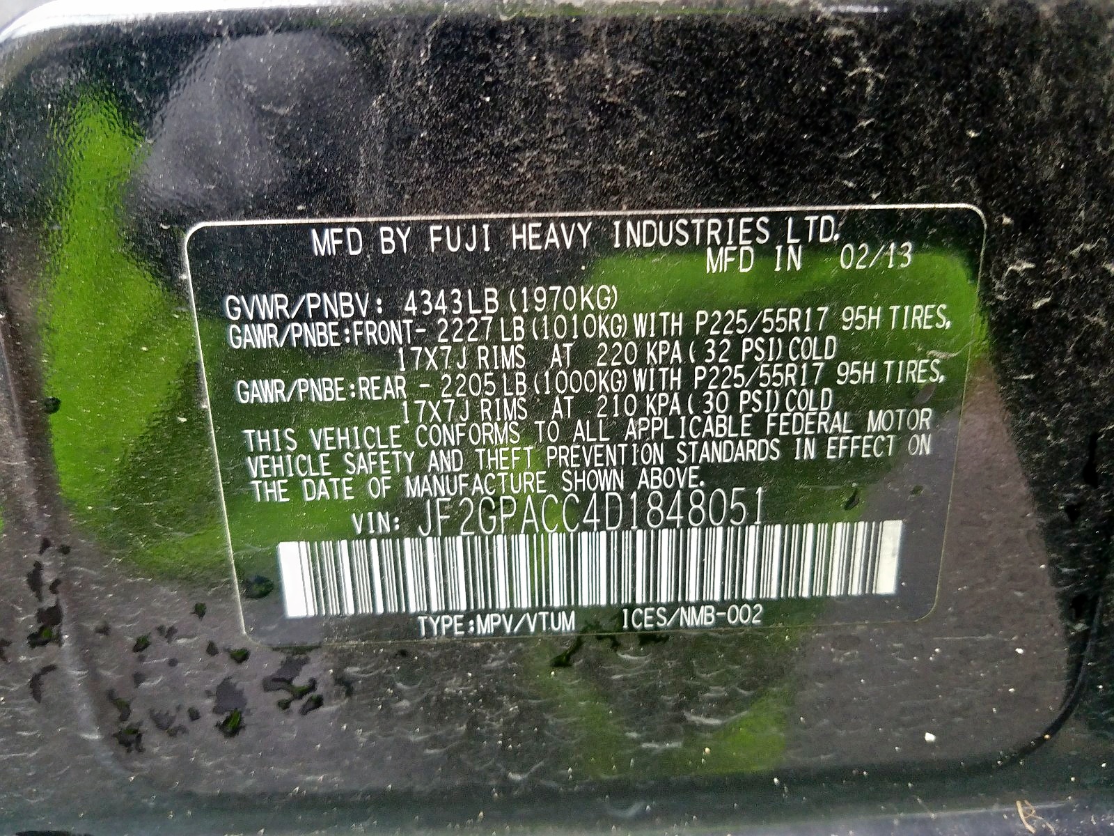 VIN: JF2GPACC4D1848051