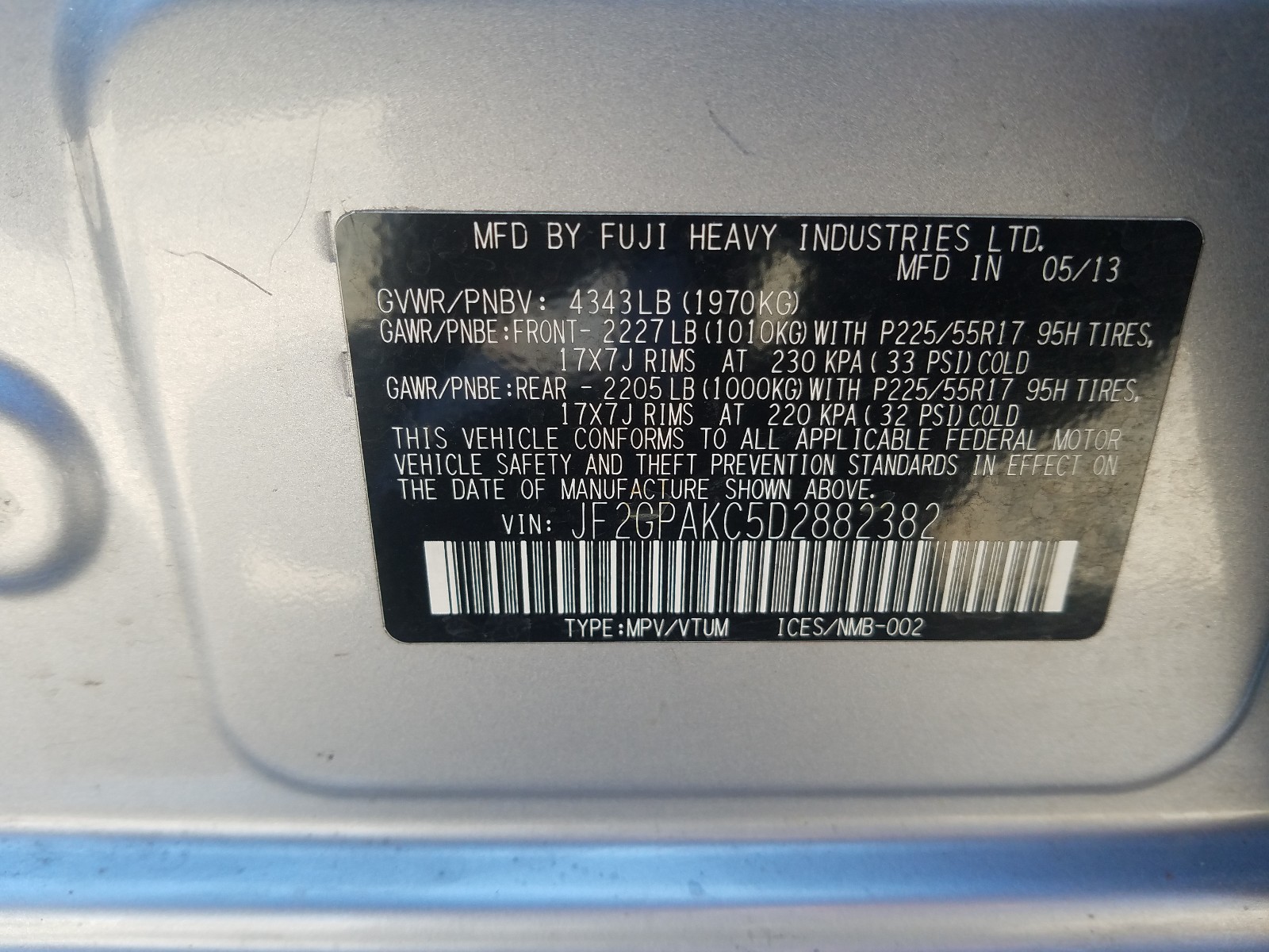 VIN: JF2GPAKC5D2882382