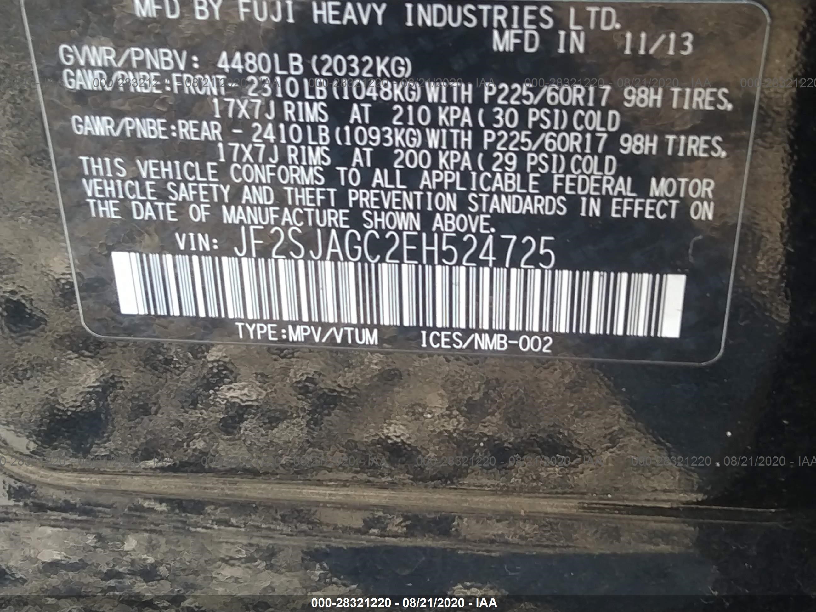 VIN: JF2SJAGC2EH524725