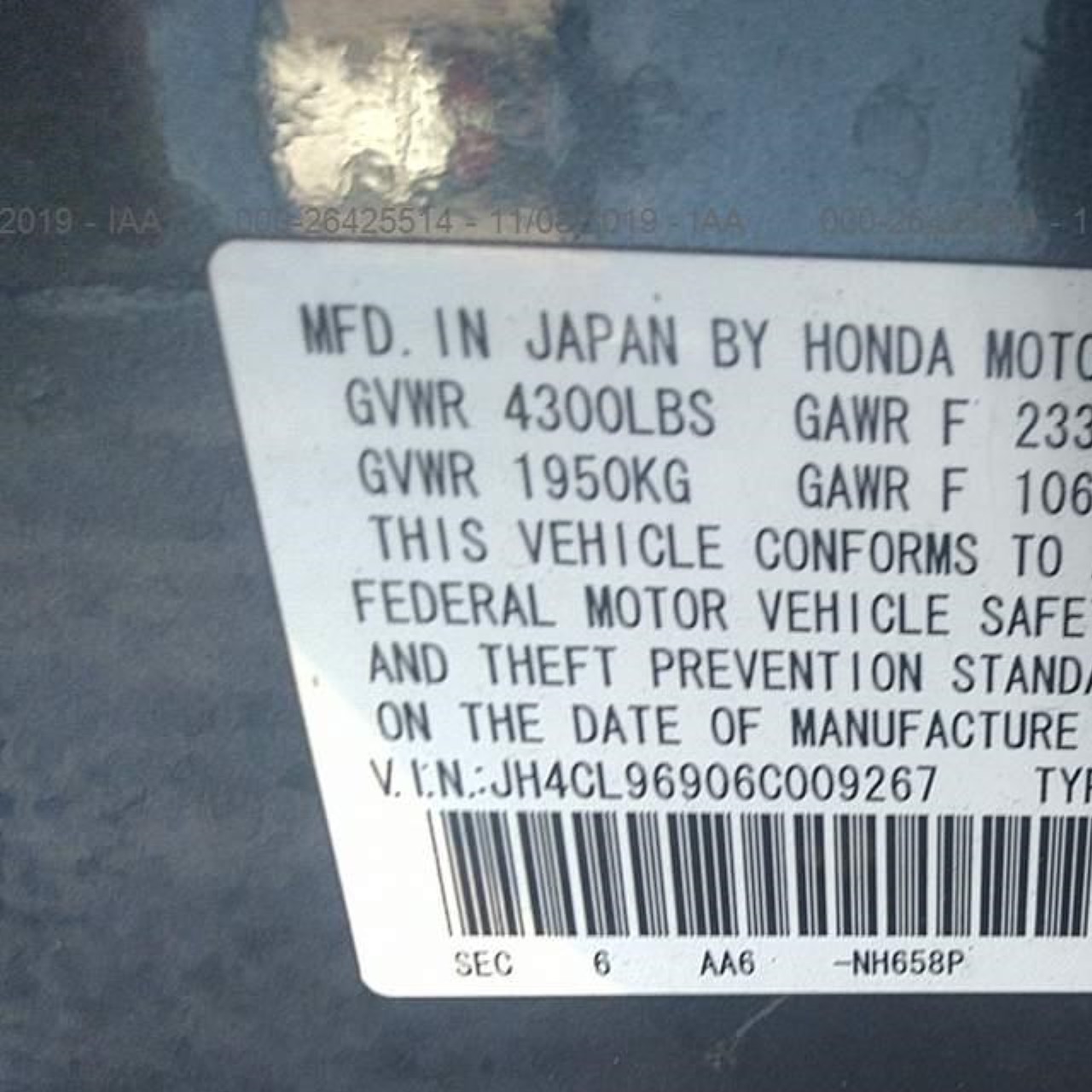 VIN: JH4CL96906C009267