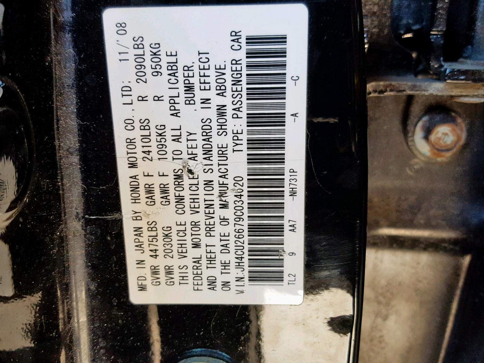 VIN: JH4CU26679C034620