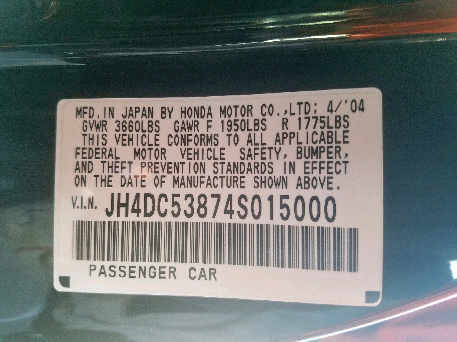 VIN: JH4DC53874S015000