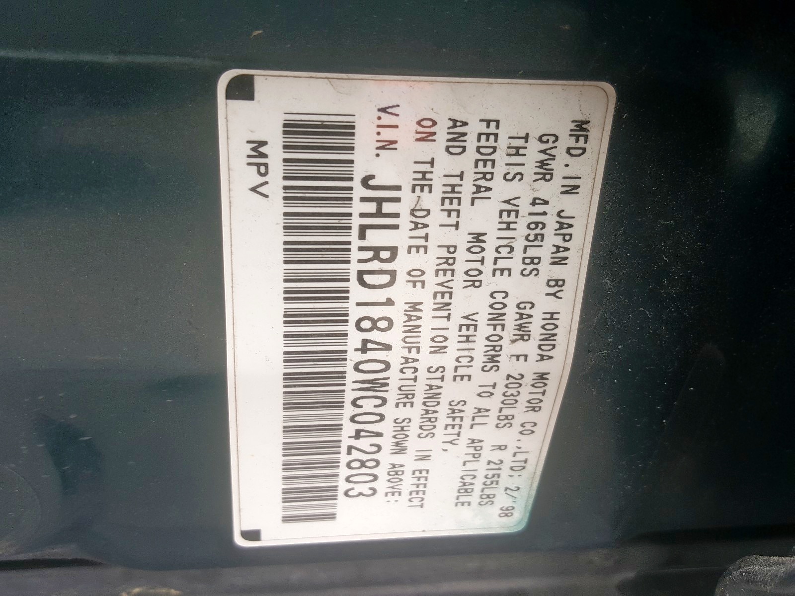VIN: JHLRD1840WC042803