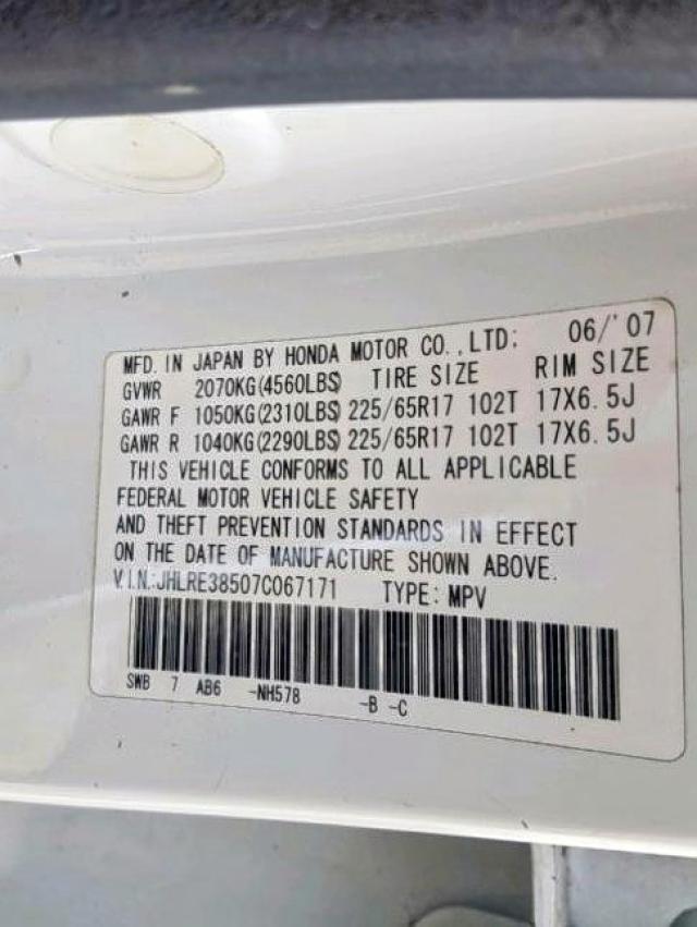 VIN: JHLRE38507C067171