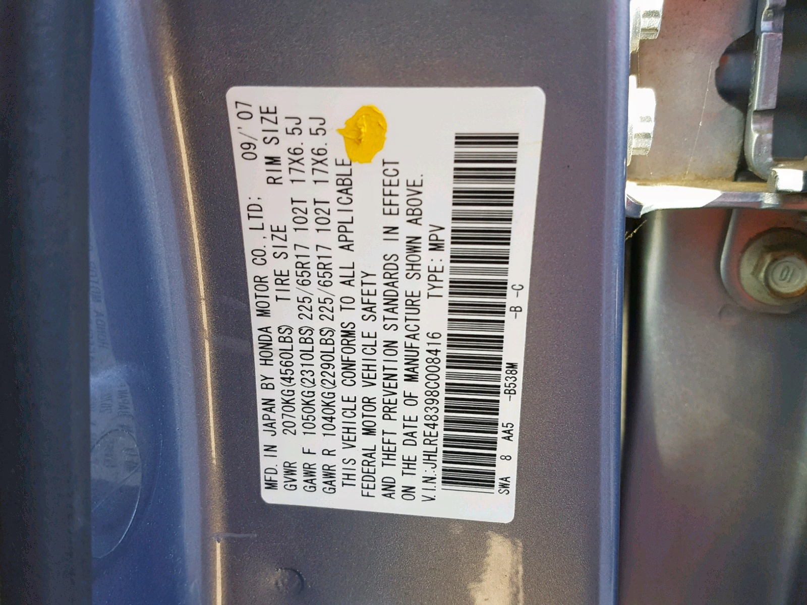 VIN: JHLRE48398C008416