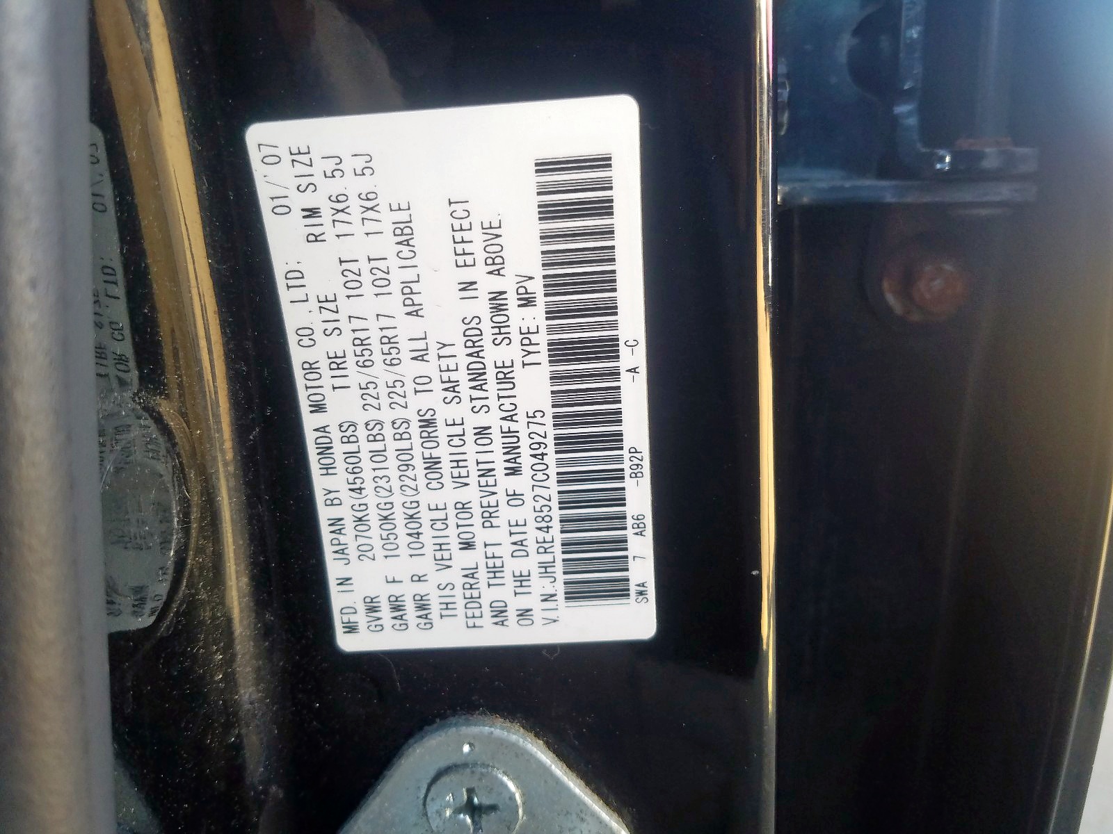 VIN: JHLRE48527C049275