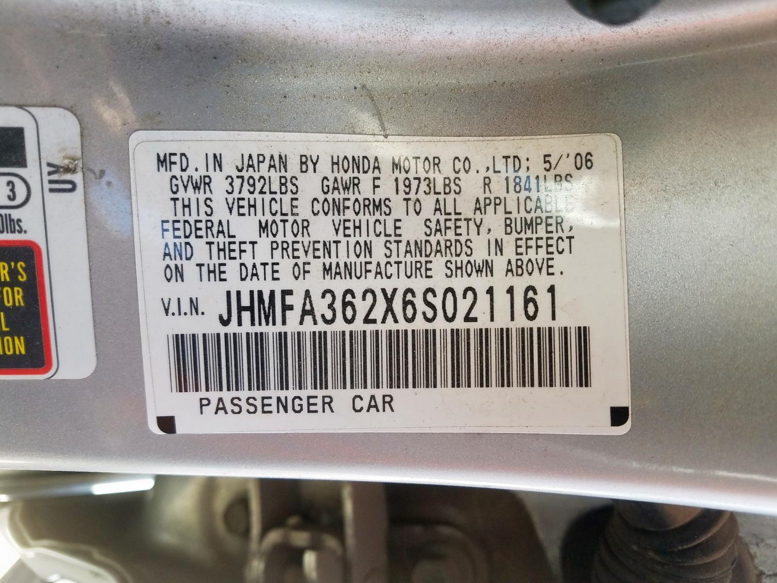 VIN: JHMFA362X6S021161
