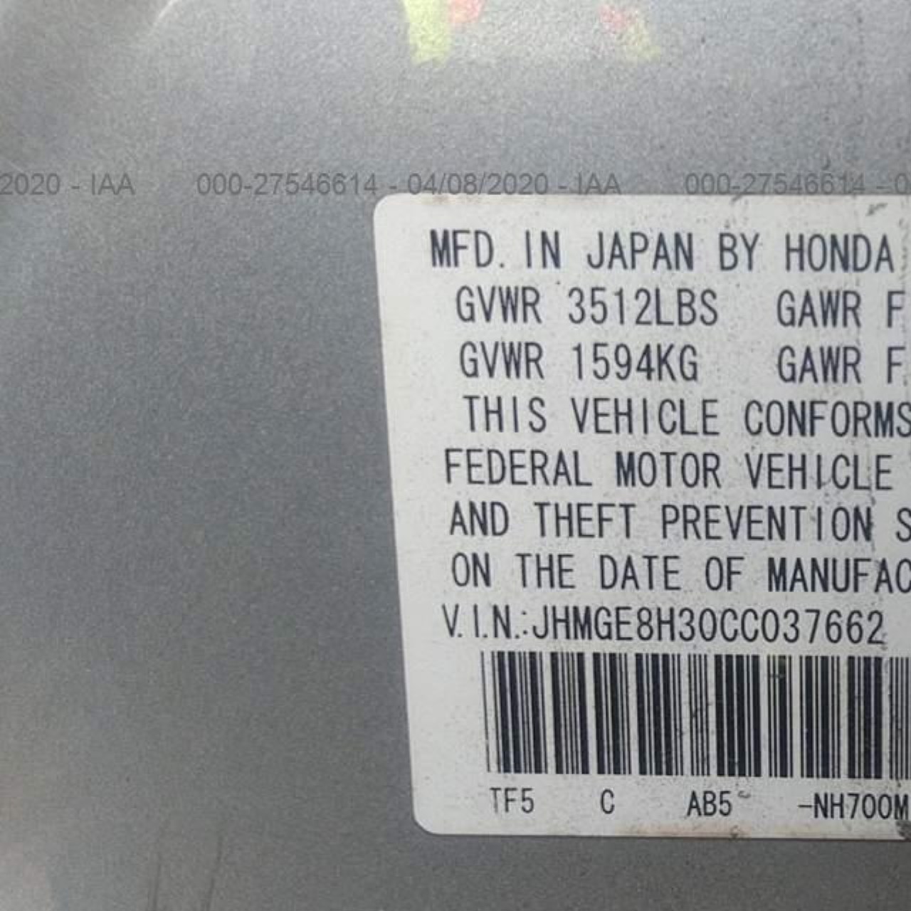 VIN: JHMGE8H30CC037662