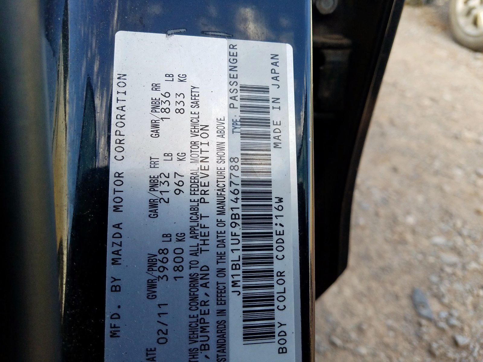 VIN: JM1BL1UF9B1467788