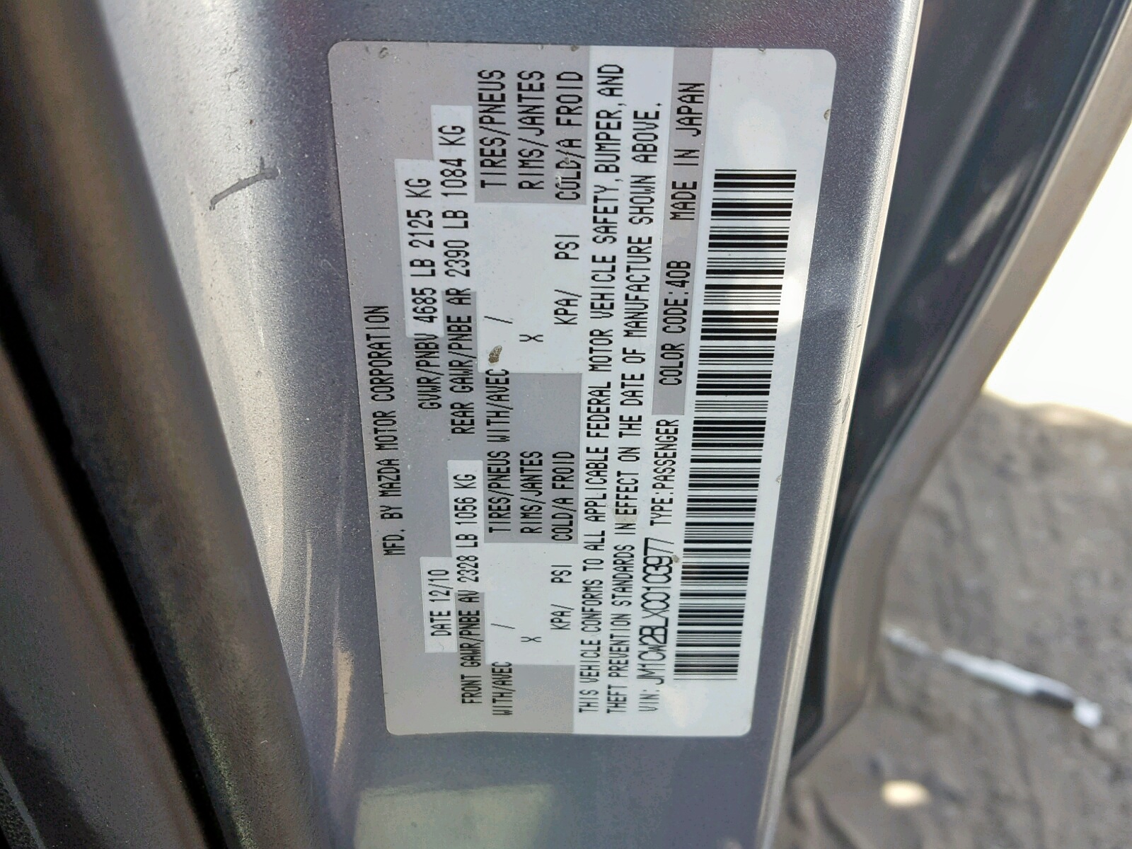 VIN: JM1CW2BLXC0103977