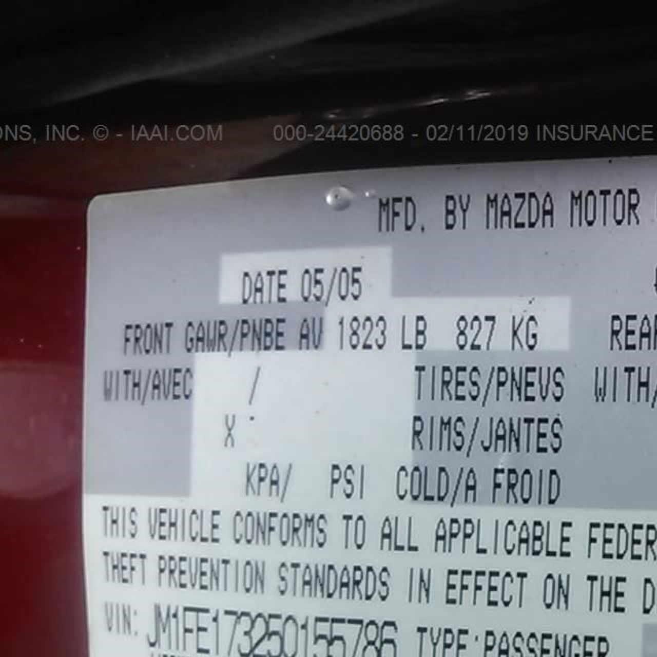 VIN: JM1FE173250155786