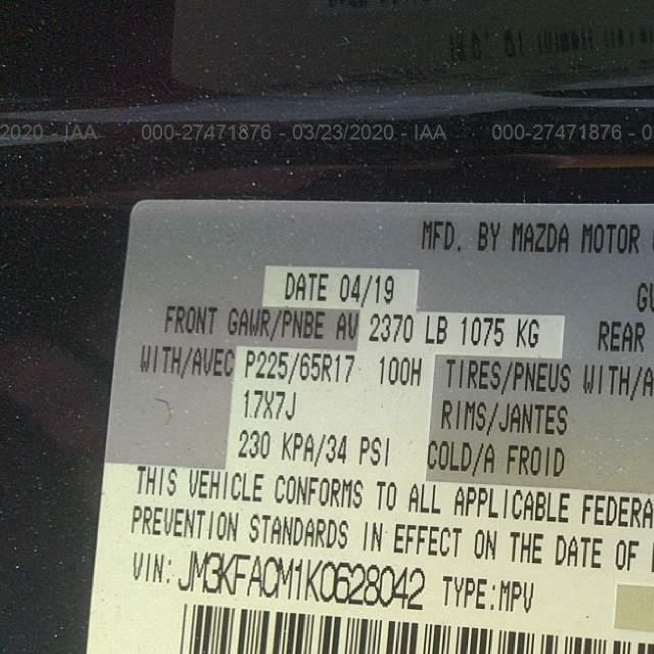 VIN: JM3KFACM1K0628042