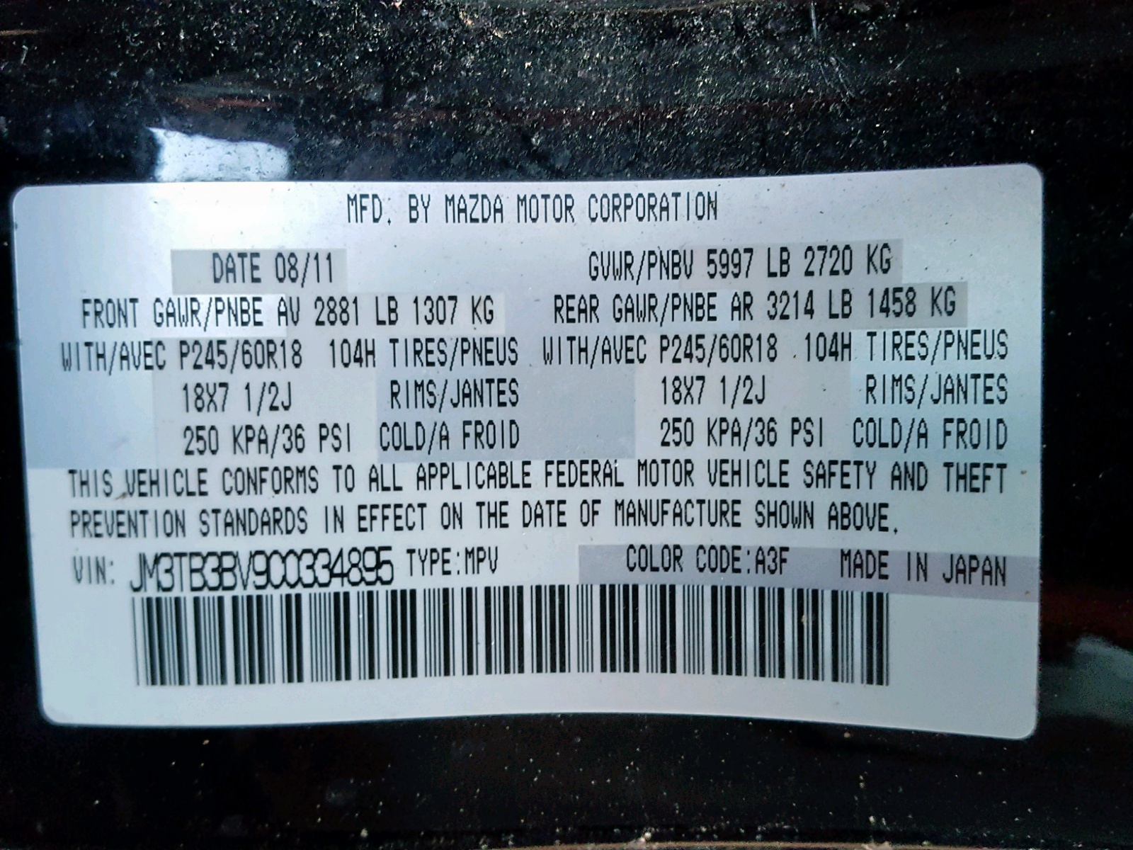 VIN: JM3TB3BV9C0334895