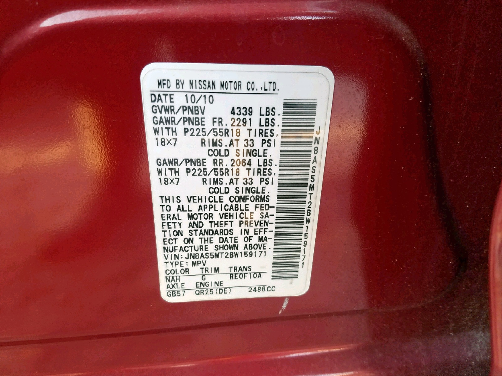 VIN: JN8AS5MT2BW159171