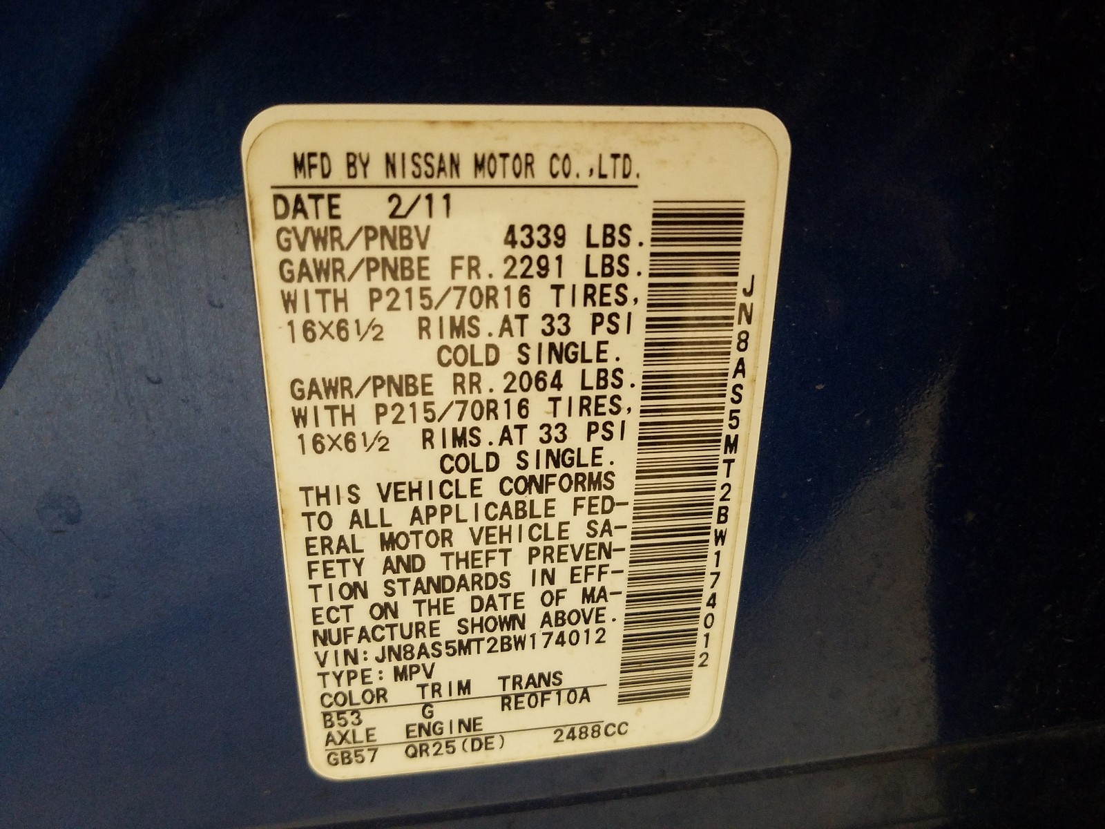 VIN: JN8AS5MT2BW174012