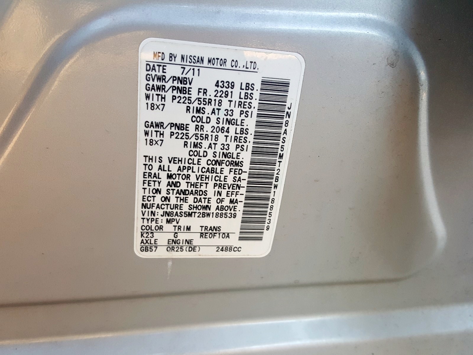 VIN: JN8AS5MT2BW188539