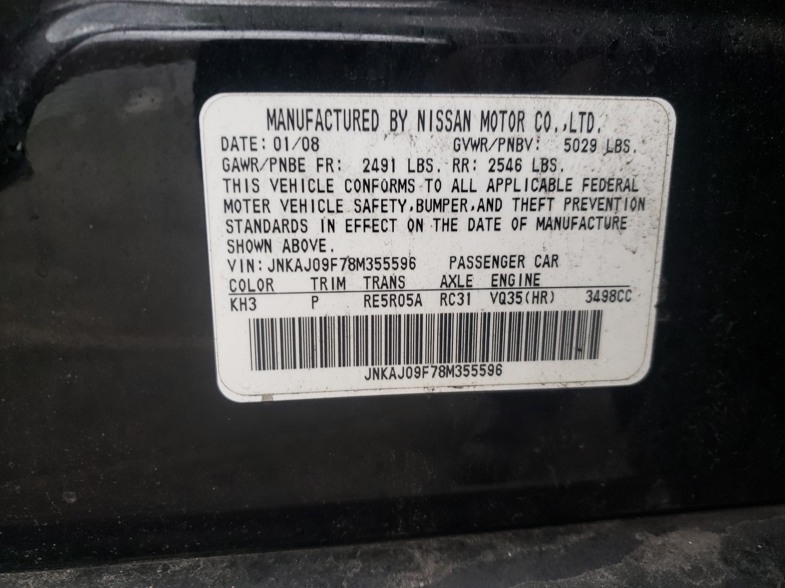 VIN: JNKAJ09F78M355596