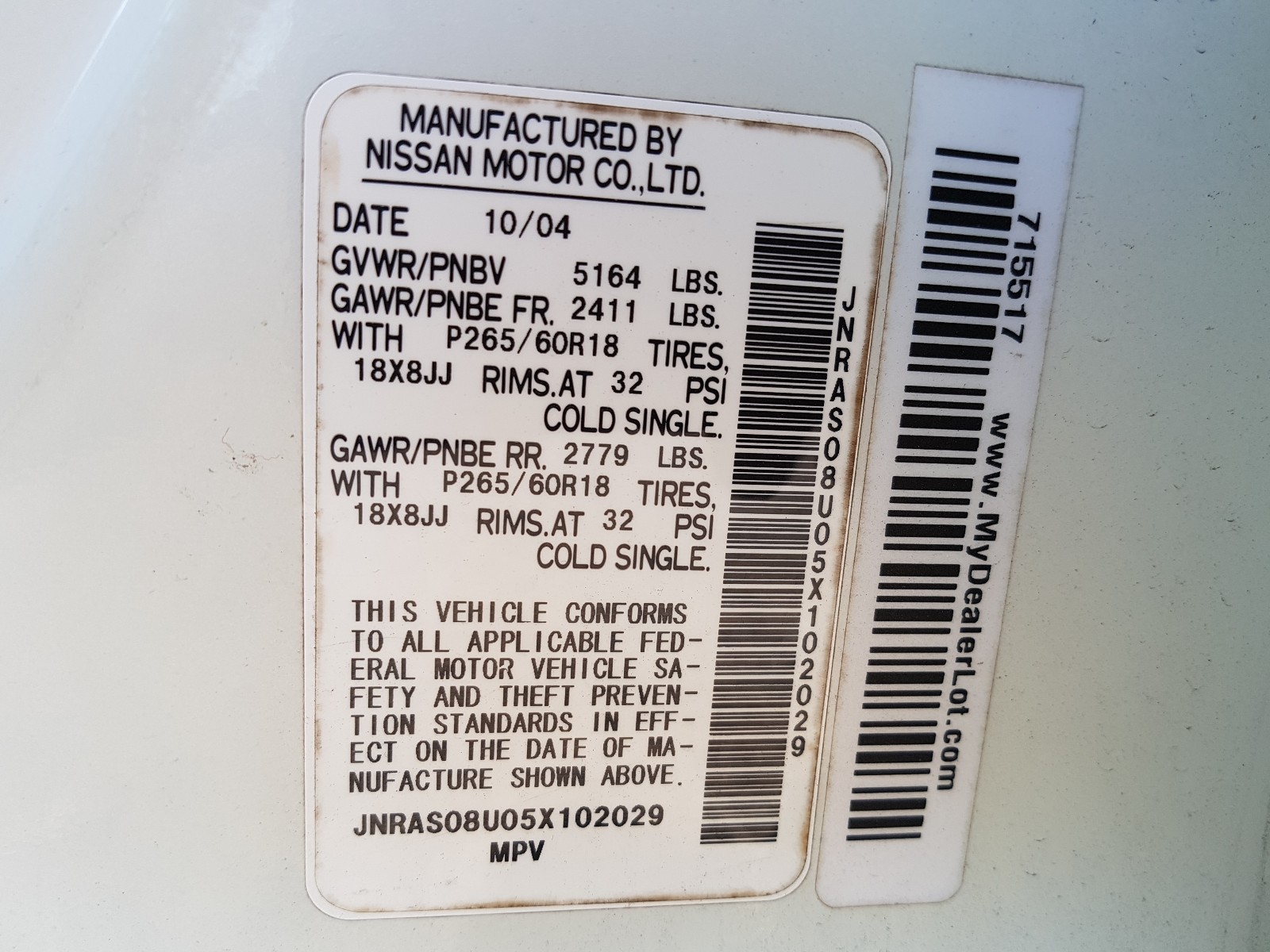 VIN: JNRAS08U05X102029