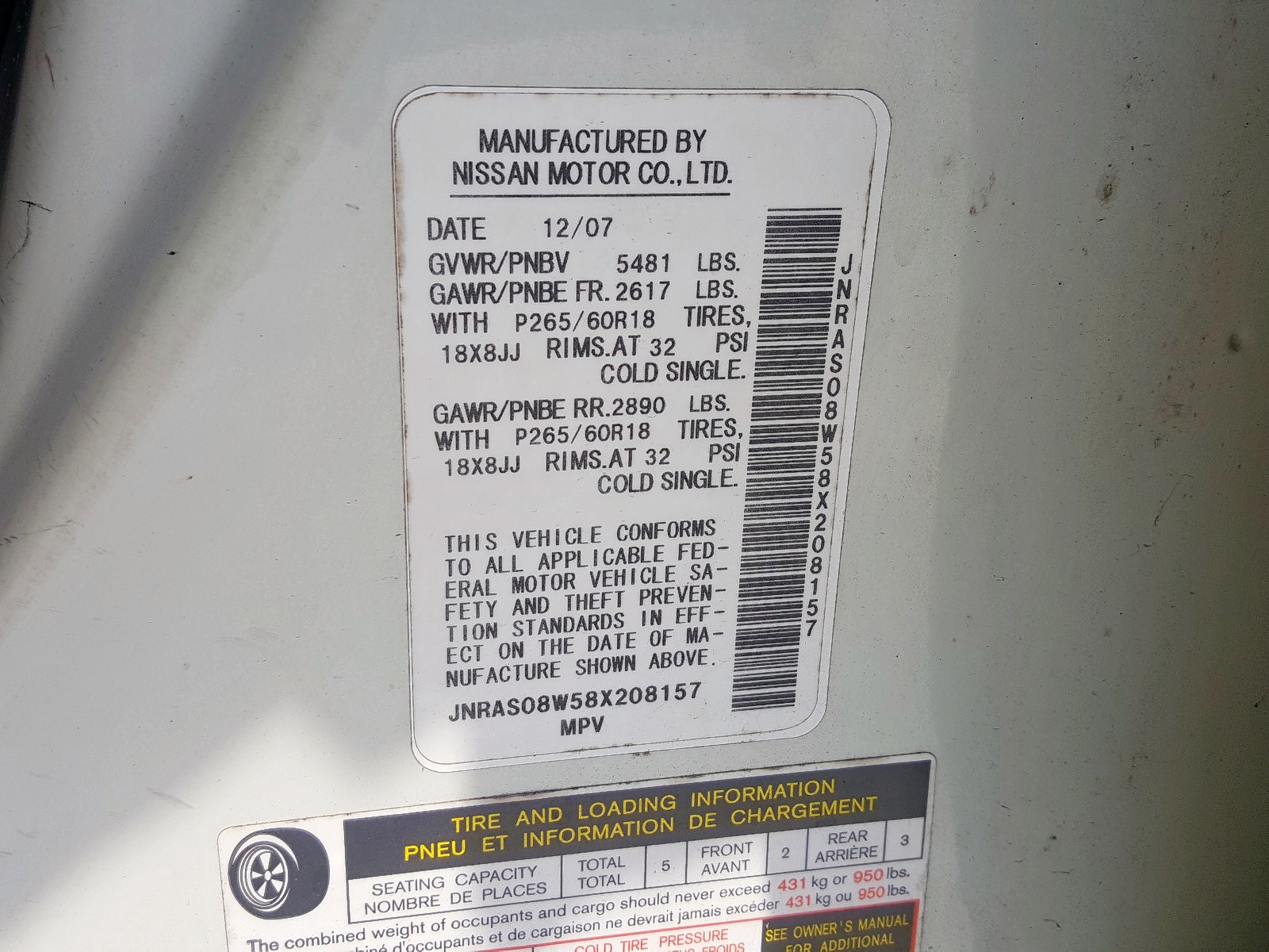 VIN: JNRAS08W58X208157