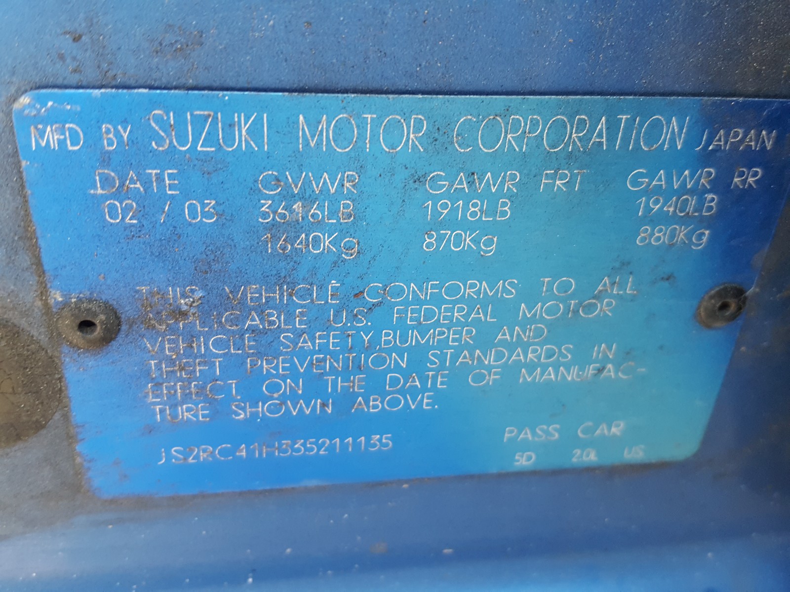 VIN: JS2RC41H335211135