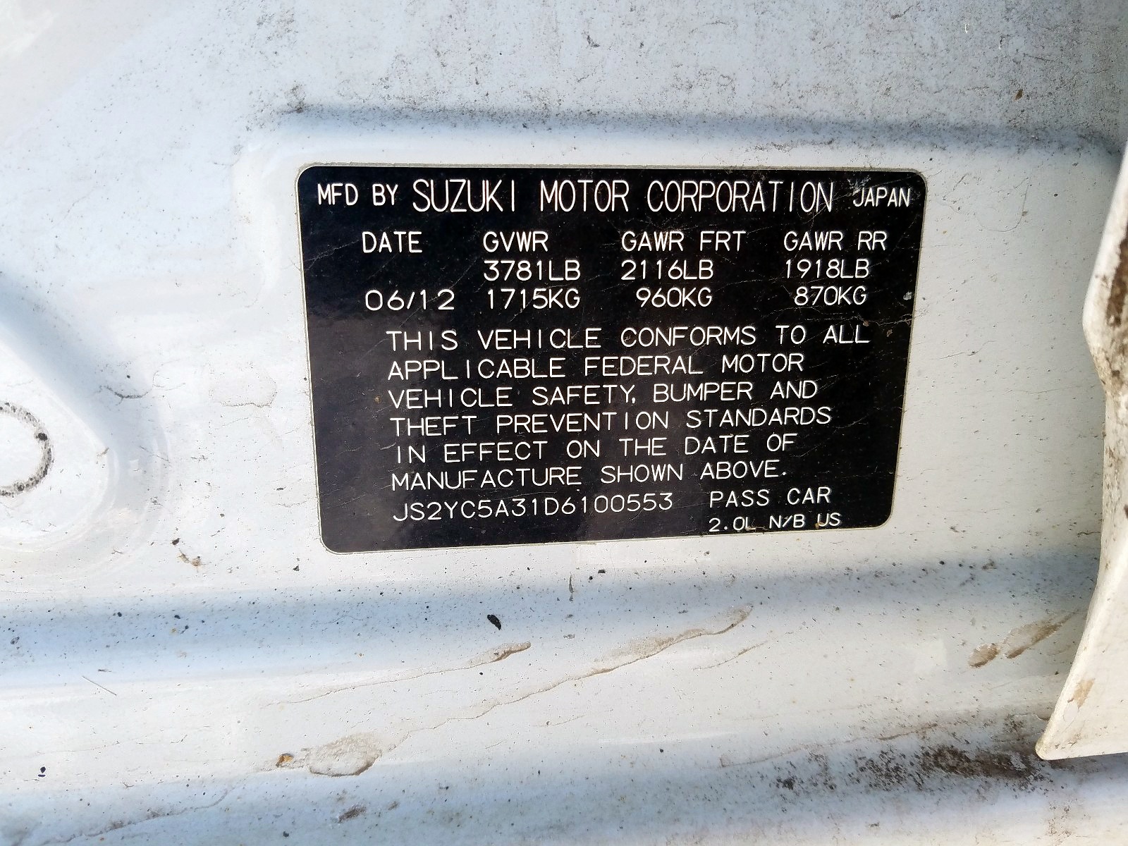 VIN: JS2YC5A31D6100553