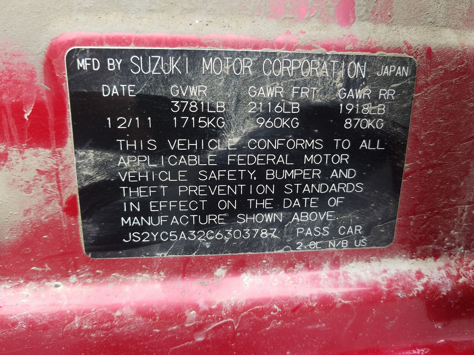 VIN: JS2YC5A32C6303787