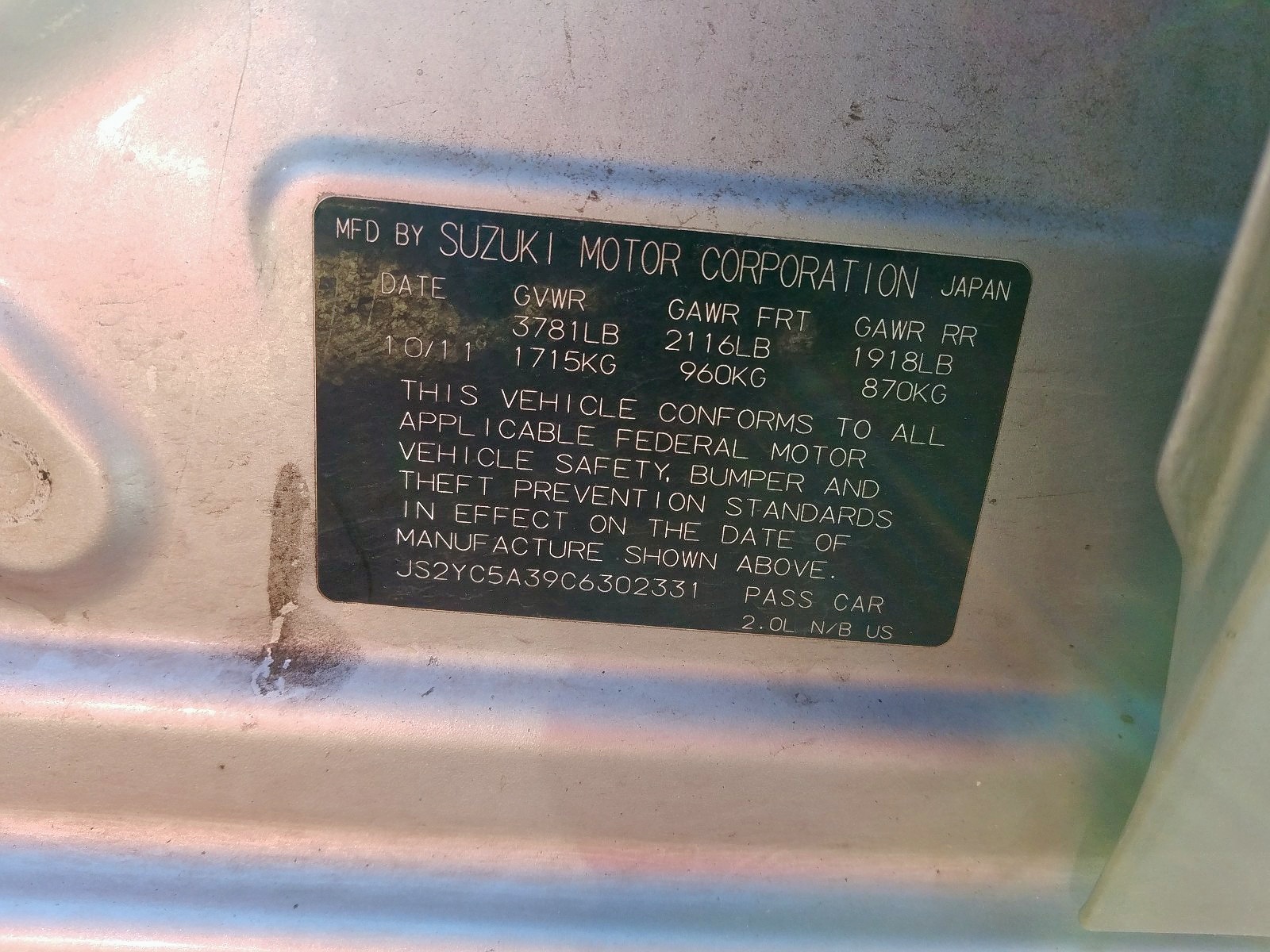 VIN: JS2YC5A39C6302331