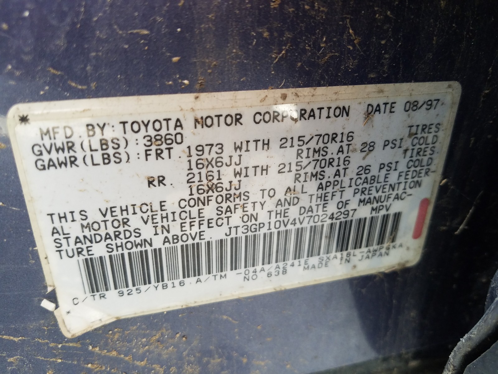 VIN: JT3GP10V4V7024297