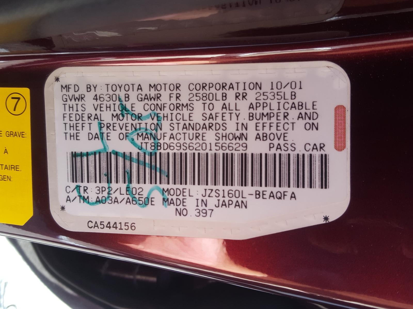 VIN: JT8BD69S620156629