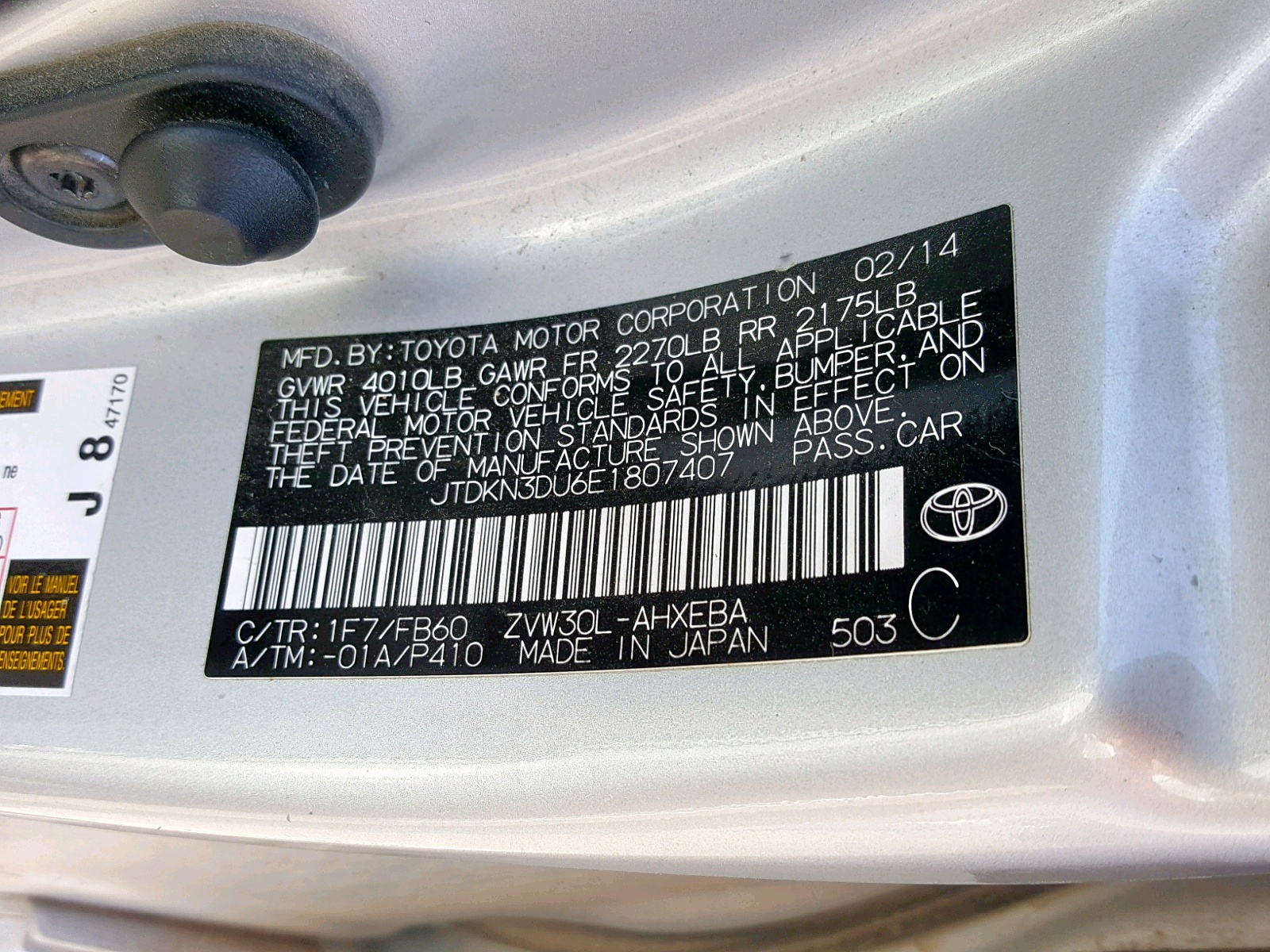 VIN: JTDKN3DU6E1807407