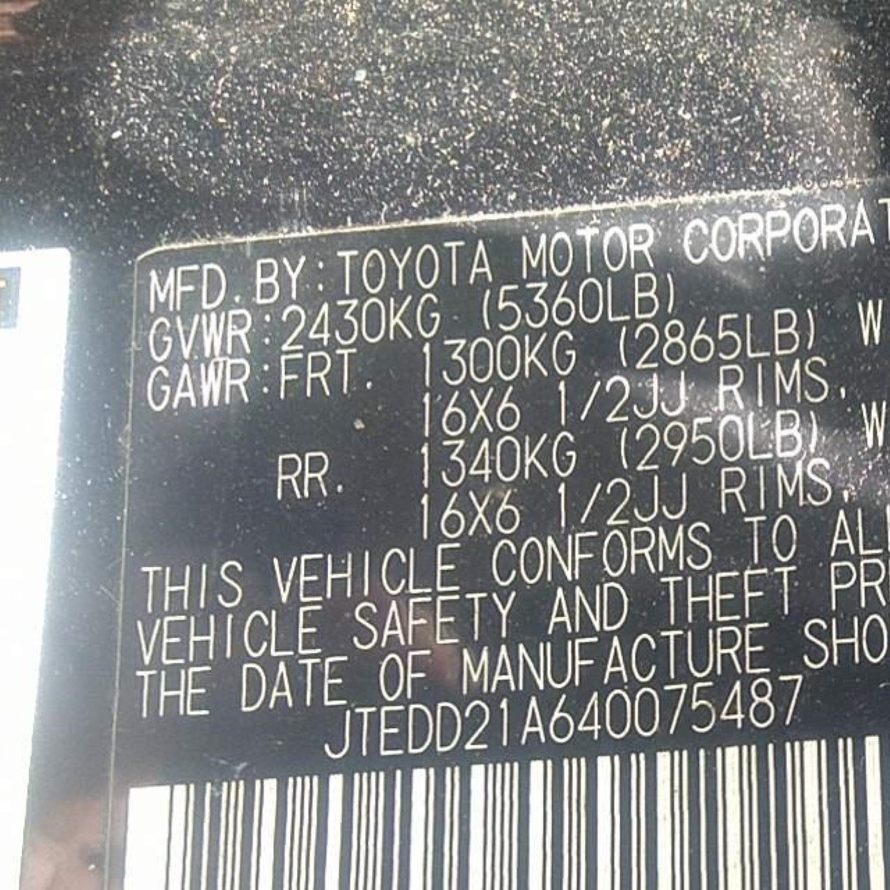 VIN: JTEDD21A640075487