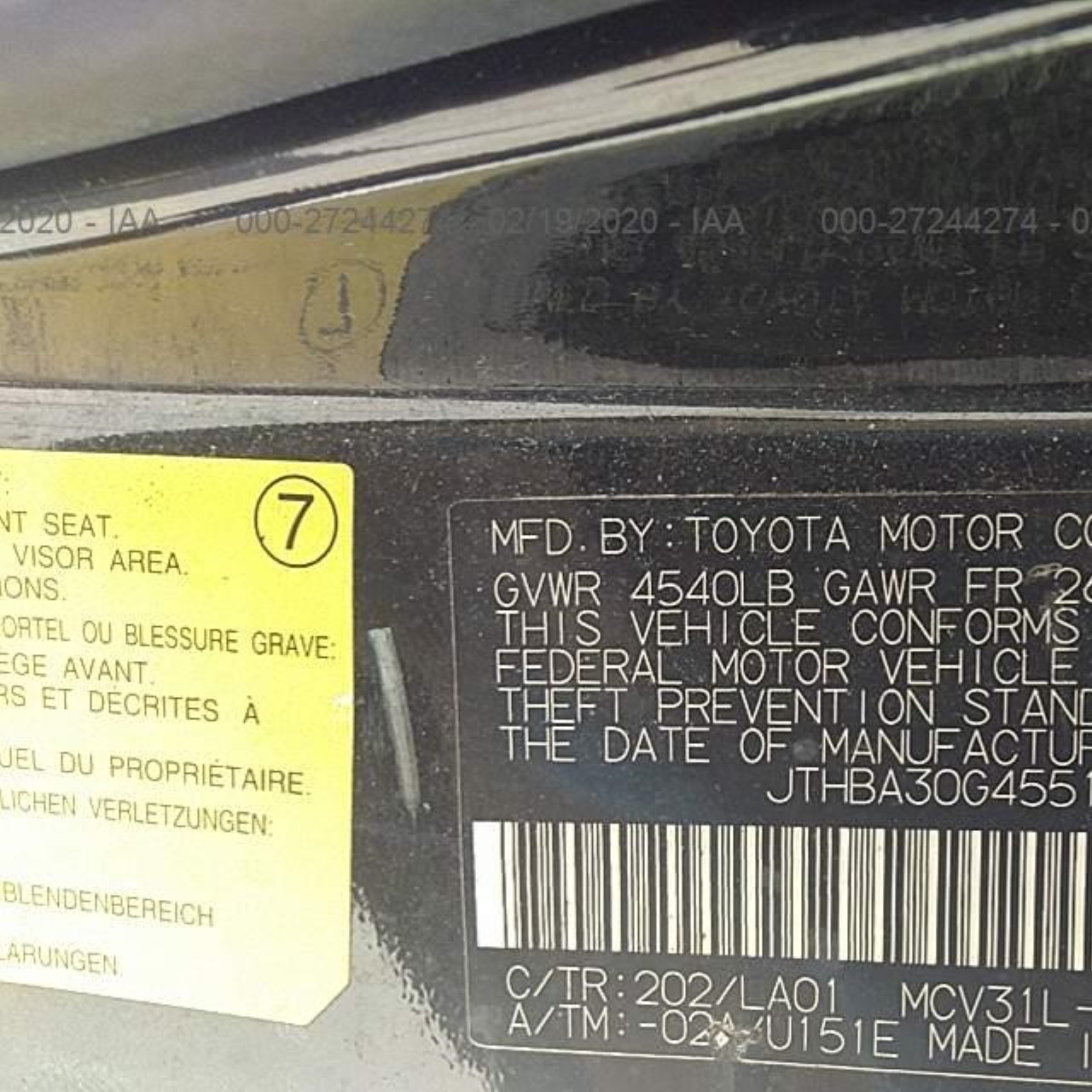 VIN: JTHBA30G455107307