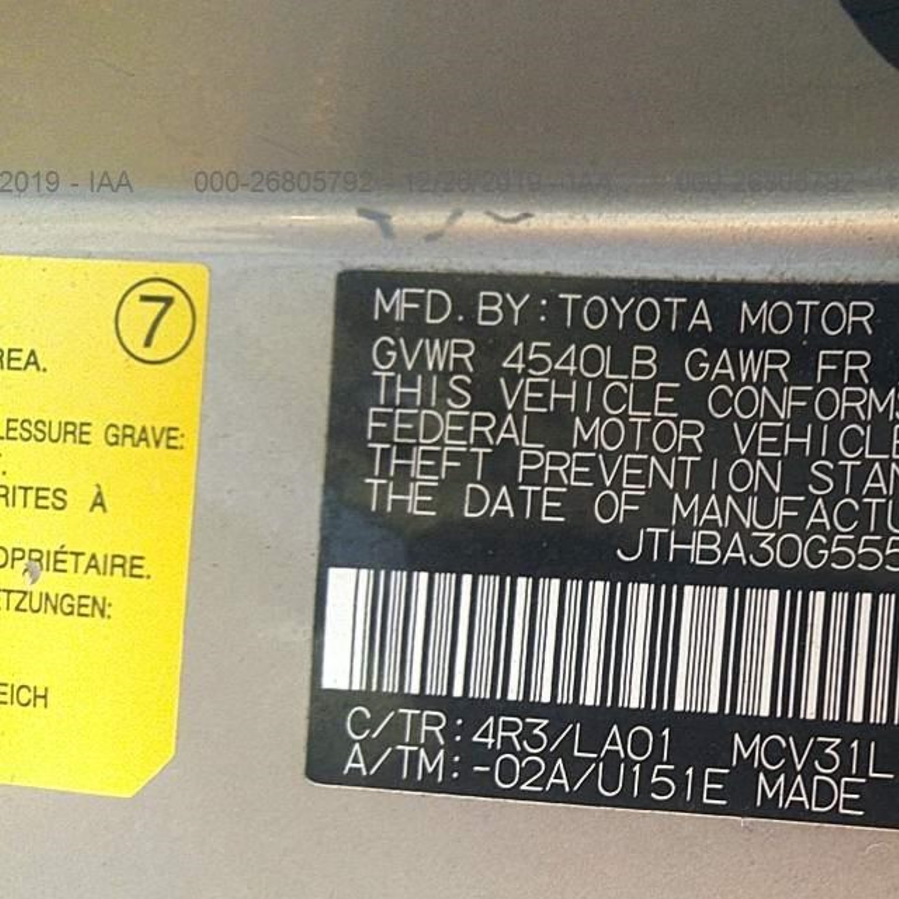 VIN: JTHBA30G555126495