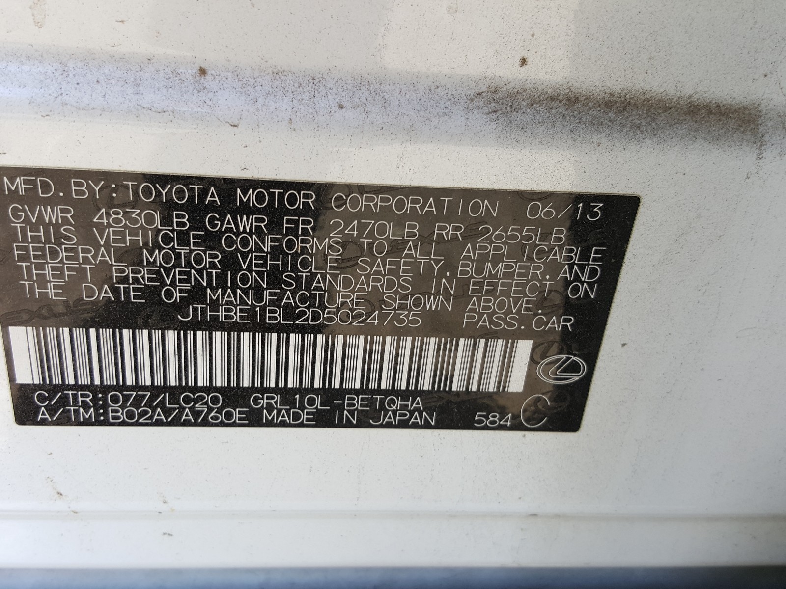 VIN: JTHBE1BL2D5024735