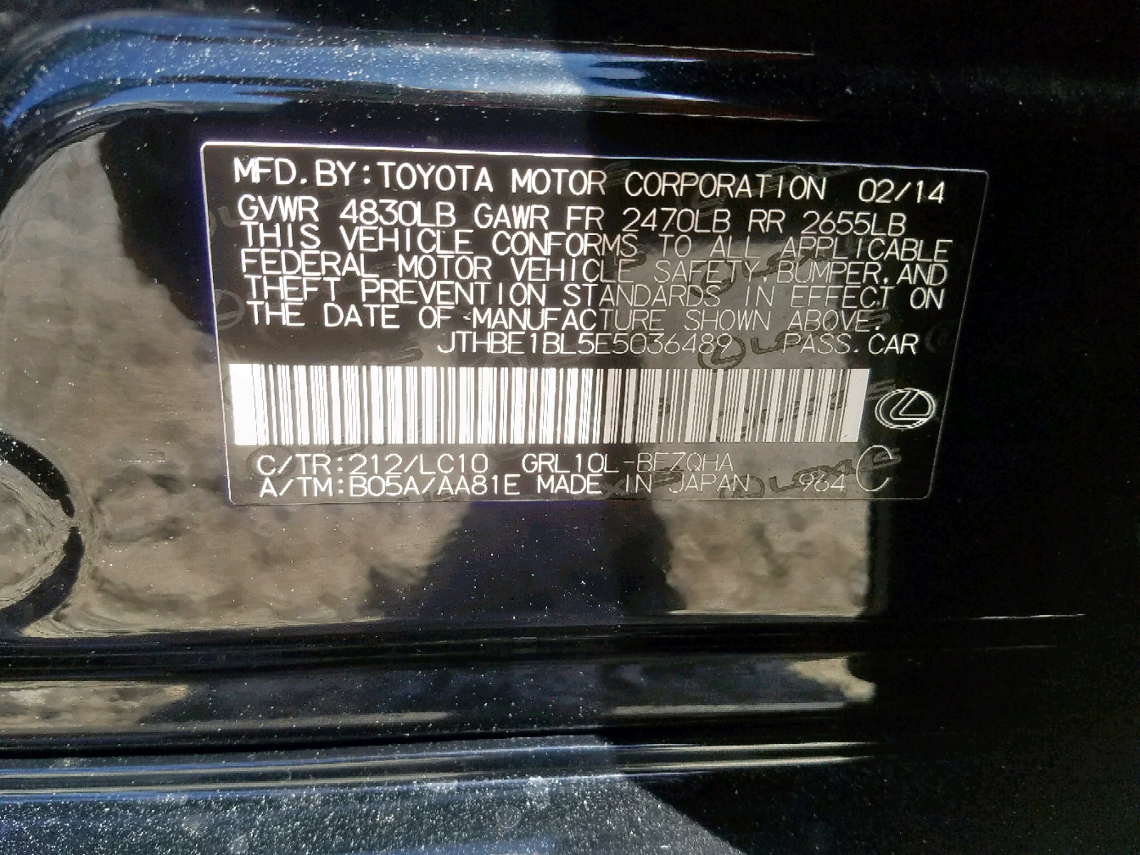 VIN: JTHBE1BL5E5036489
