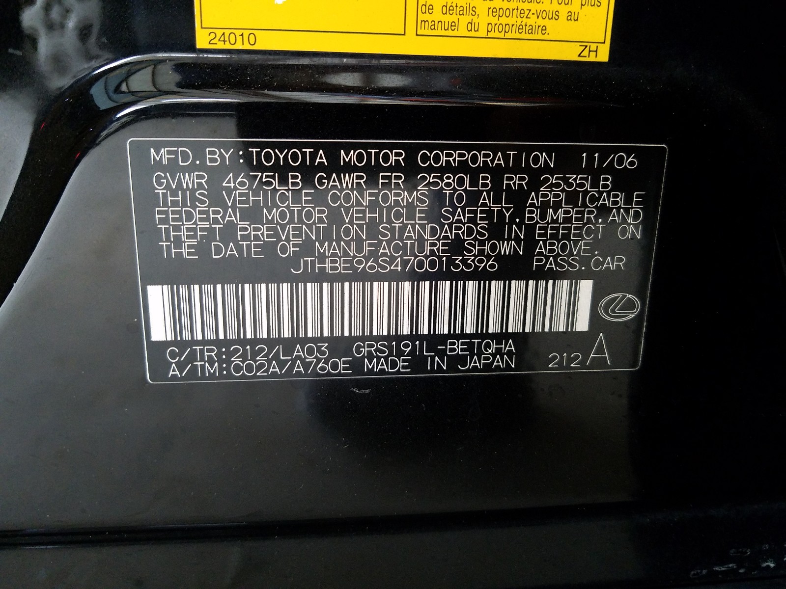 VIN: JTHBE96S470013396