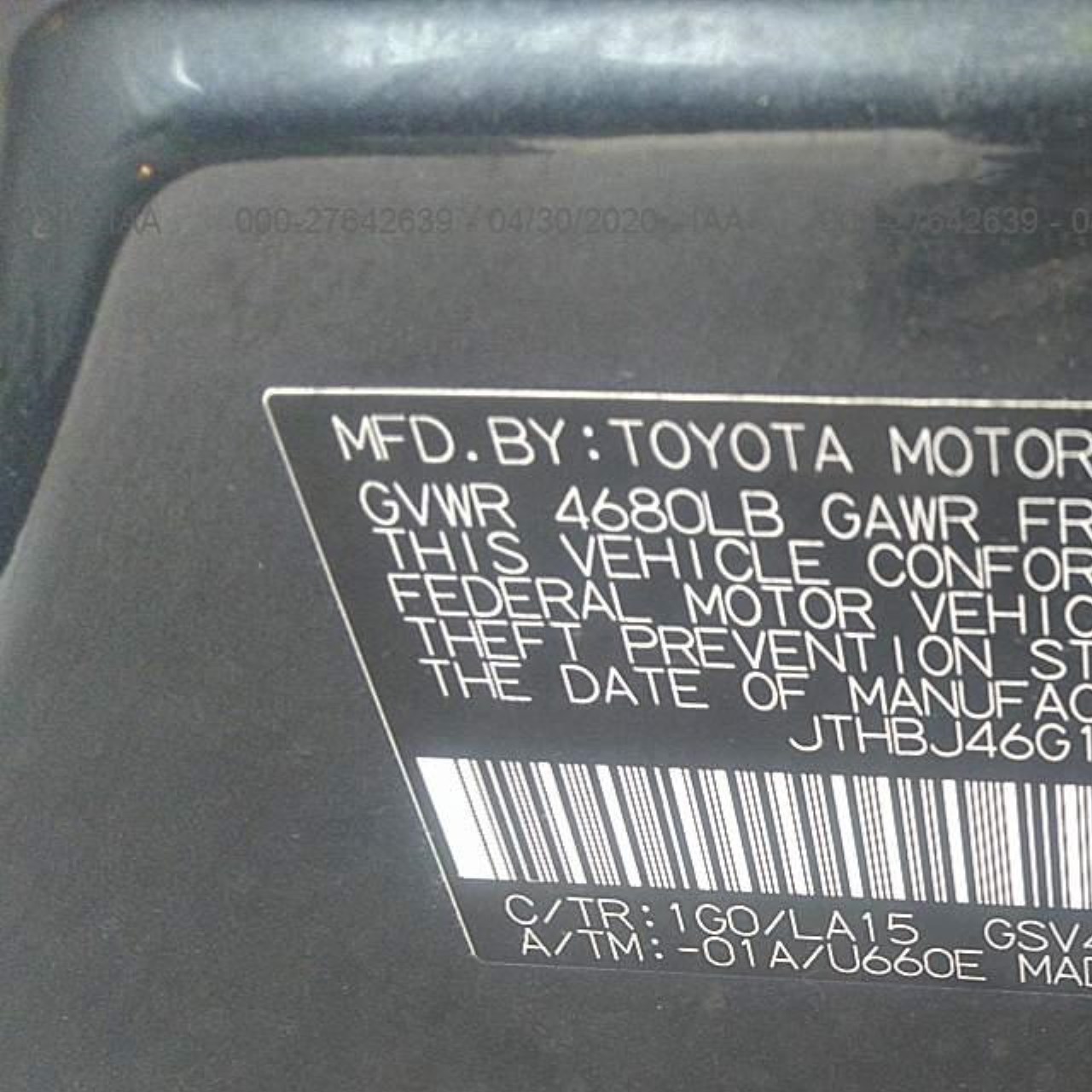 VIN: JTHBJ46G192305606