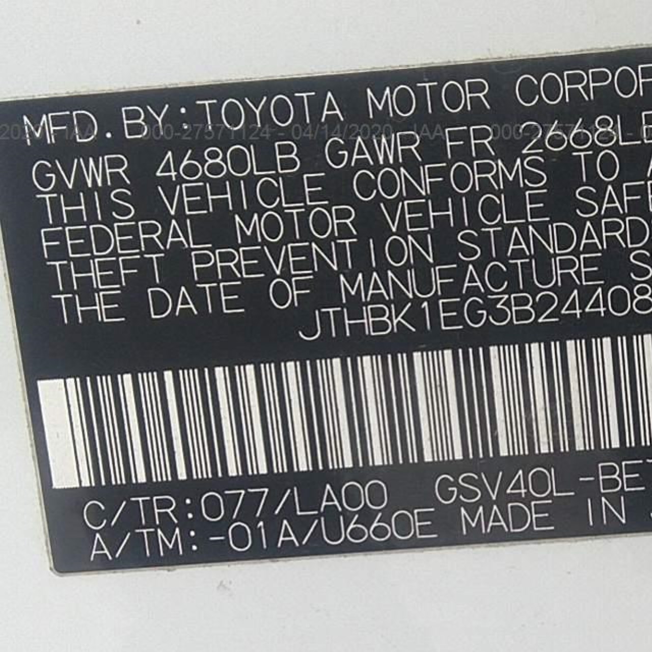 VIN: JTHBK1EG3B2440847