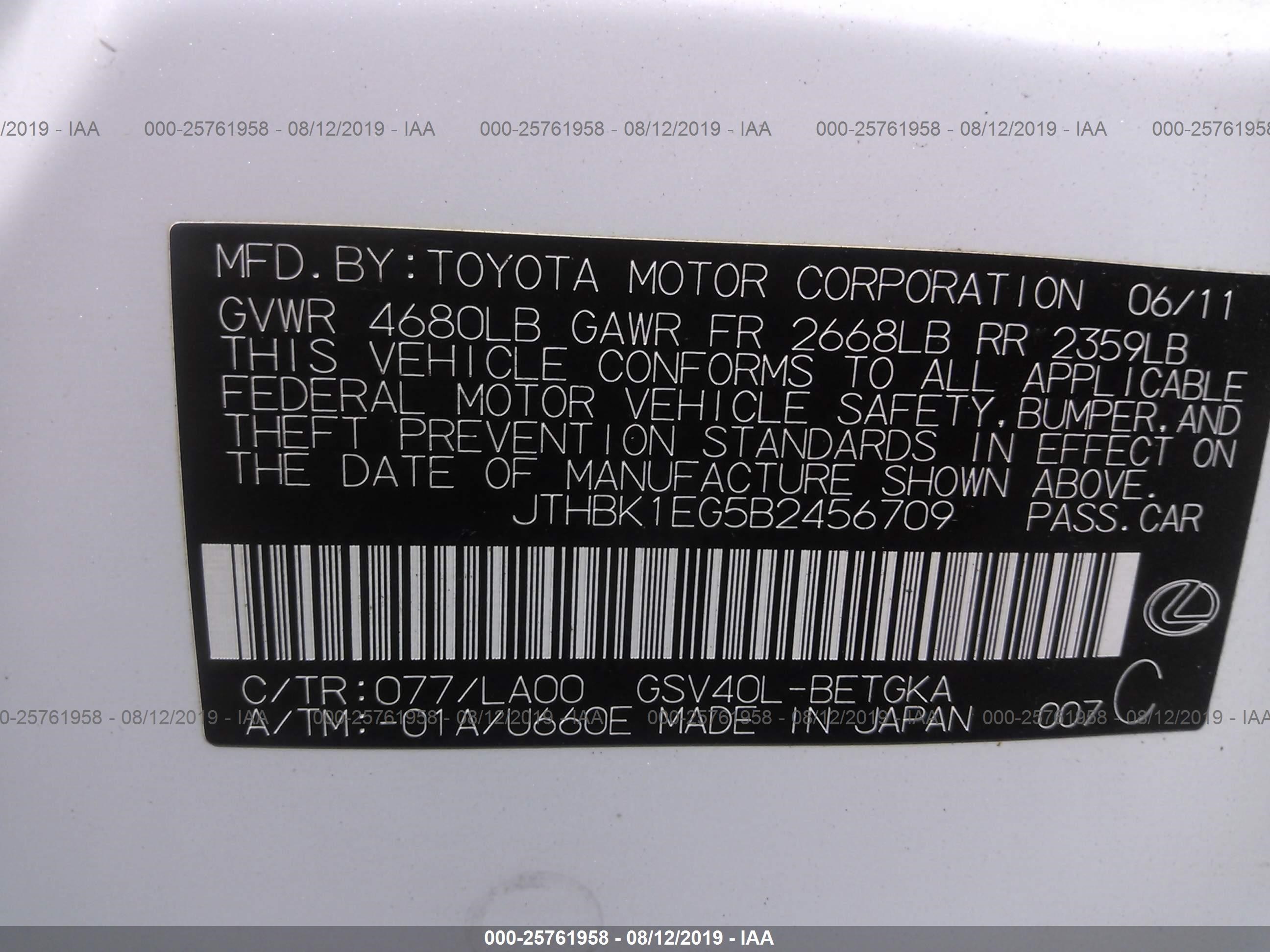 VIN: JTHBK1EG5B2456709