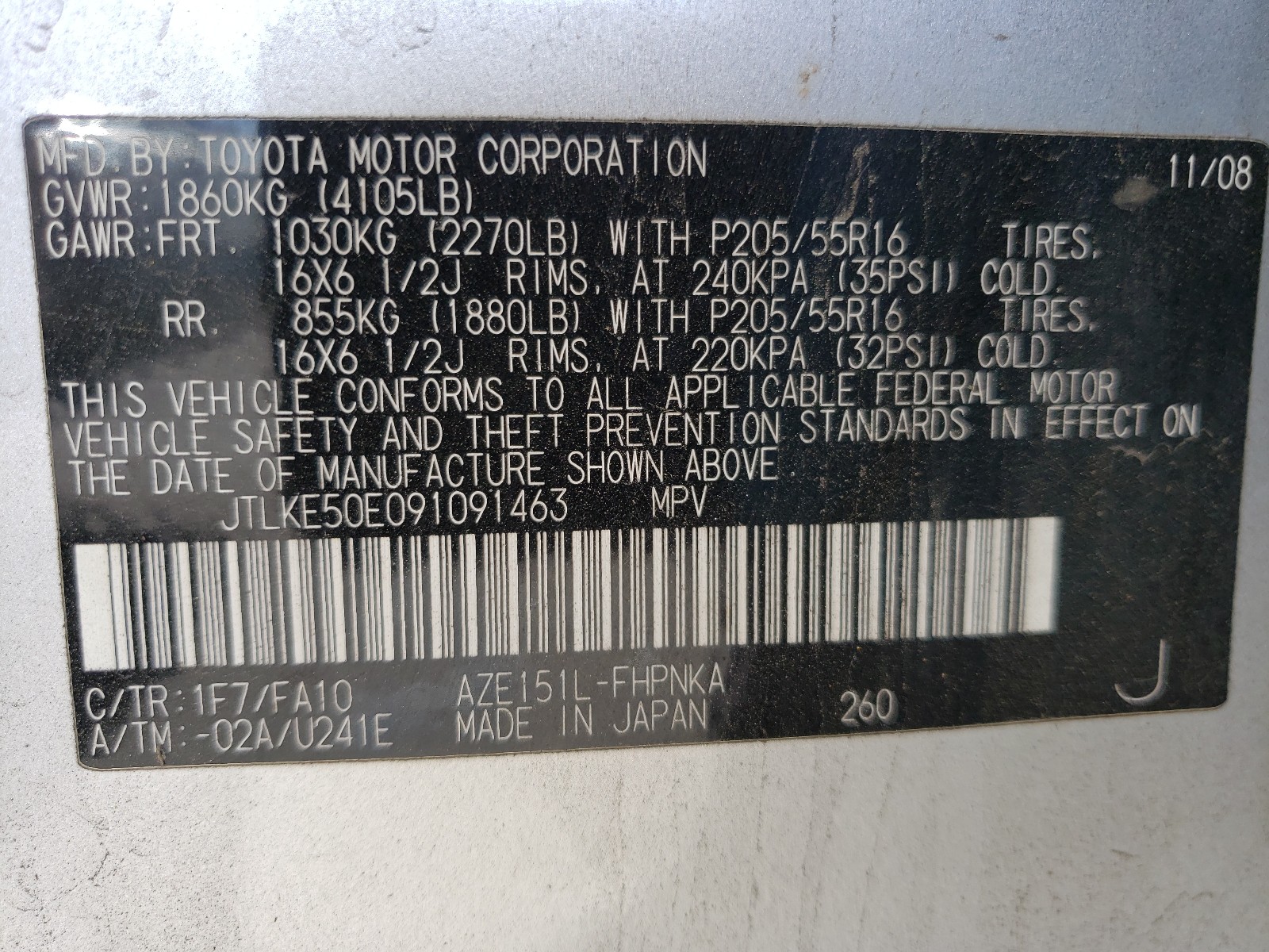 VIN: JTLKE50E091091463