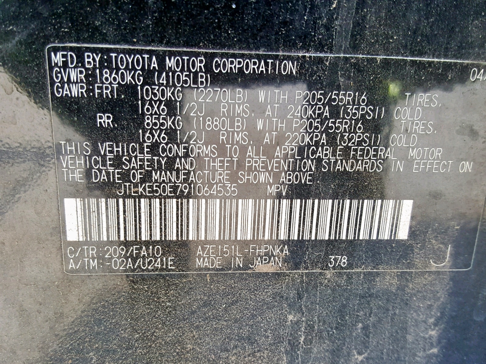 VIN: JTLKE50E791064535