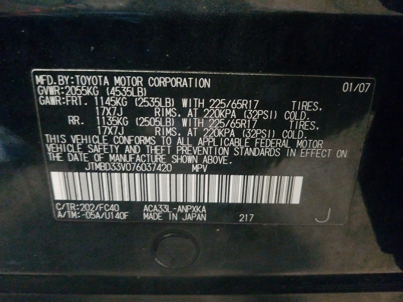 VIN: JTMBD33V076037420