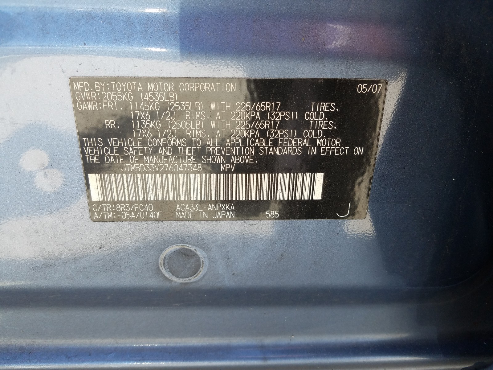 VIN: JTMBD33V276047348